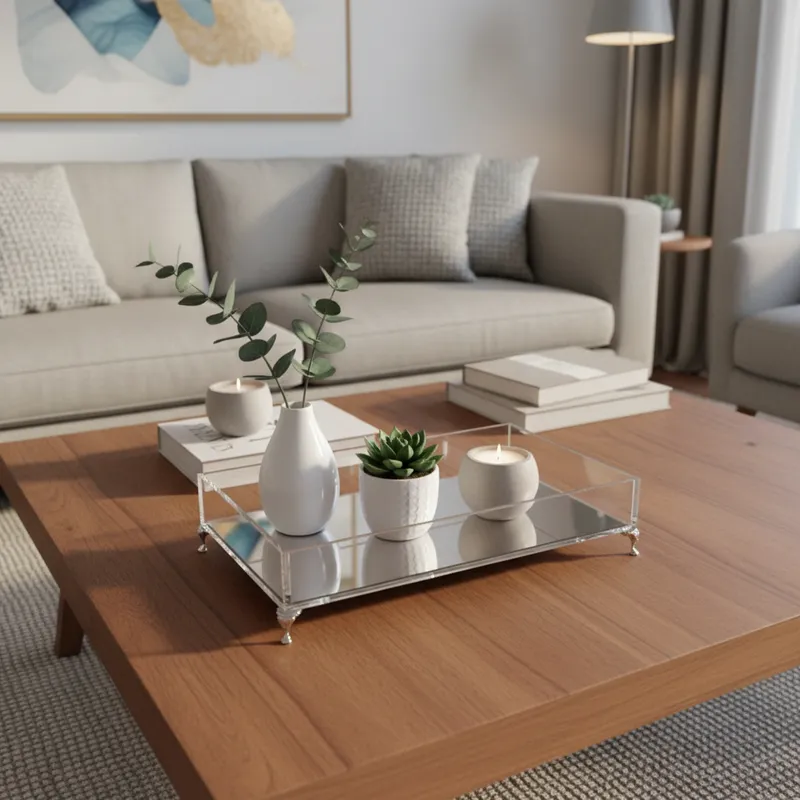 Bandeja Trabalhada em Acrílico Cristal e Acrílico Espelhado Prata