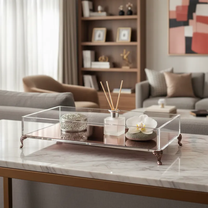 Bandeja Trabalhada em Acrílico Cristal e Acrílico Espelhado Rose