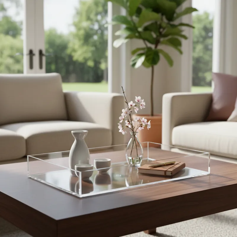 Ela esbanja sofisticação através de sua apresentação, onde foi produzida em Acrílico Cristal (Transparente) deixando-a ainda mais glamourosa. Ideal para acomodar os acessórios que compõe a bancada, tal como sabonetes, porta algodão e difusores, ou ainda para manter organizados seus perfumes e apetrechos de beleza. Torne as bandejas parte da decoração do seu lar, elas são versáteis e apaixonantes!