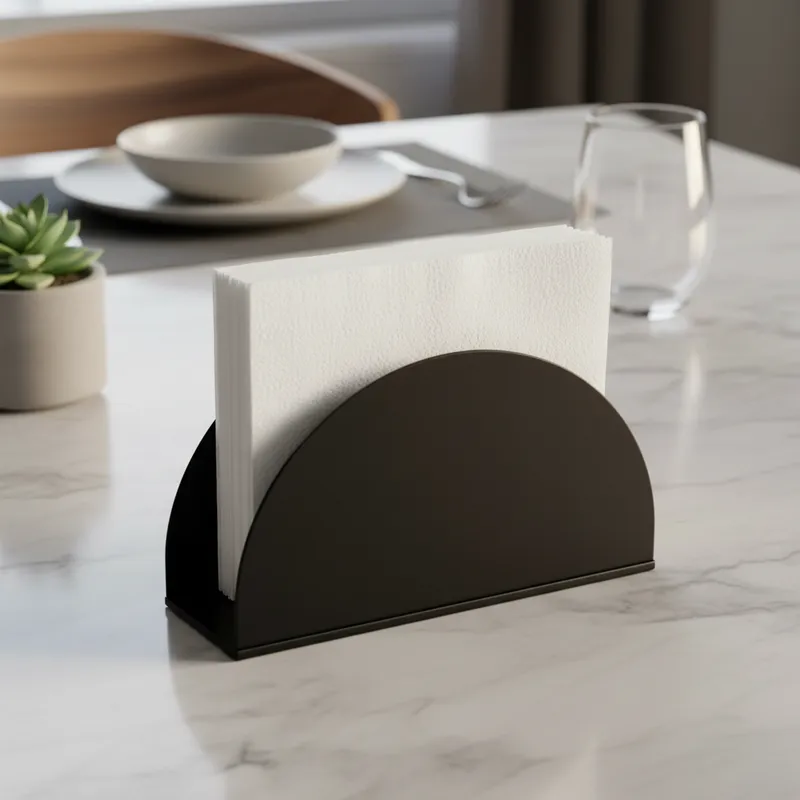Porta Guardanapo 1/2 Lua em Acrílico Preto.