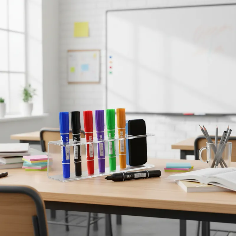 Suporte de parede para Canetões e Apagador de Lousa , ideal para organização e facilitar o manuseio das peças, deixando o trabalho mais dinâmico.